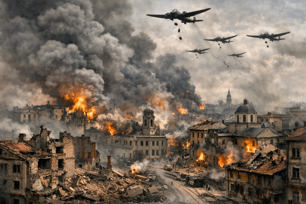 U ranim jutarnjim časovima, dok su ulice još bile mirne, nebo iznad Beograda ispunili su avioni Luftvafea (nemačka avijacija). U samo nekoliko sati grad je pretvoren u ruševine. Najveći udar pretrpela je civilna infrastruktura, a među simbolima stradanja ostala je Narodna biblioteka na Kosančićevom vencu, koja je nestala u plamenu zajedno sa stotinama hiljada knjiga i rukopisa.
